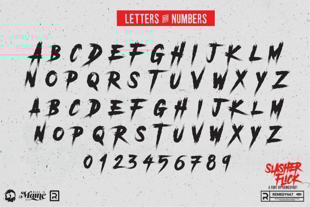 The typeface you count on for terror, is Slasher Flick. A horror font literally made for slasher movies.