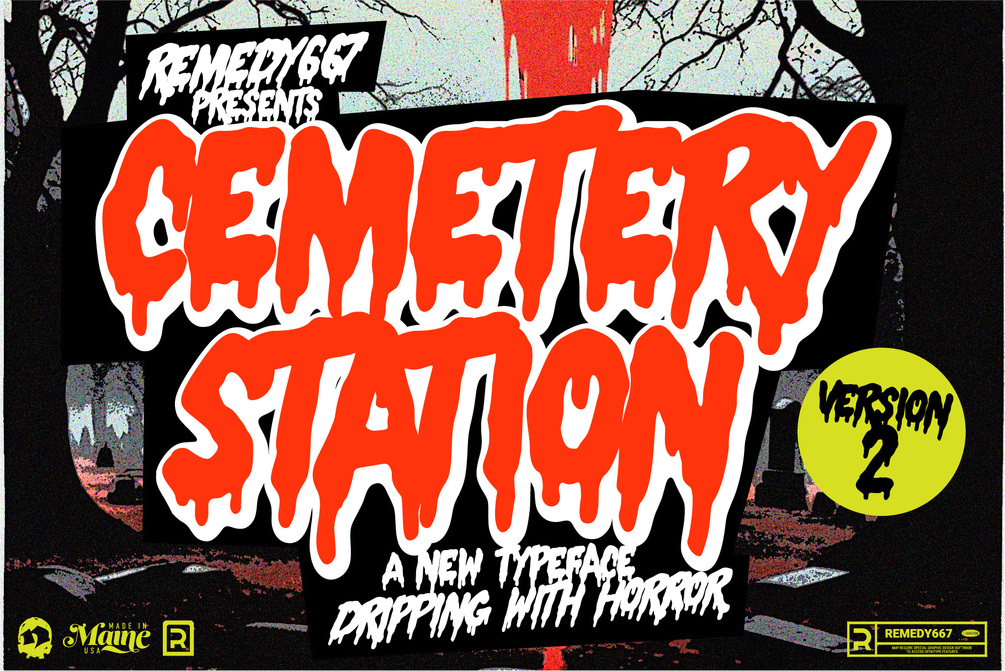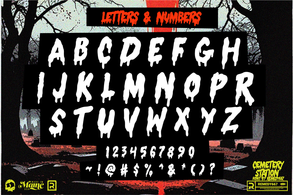 Get creative with Cemetery Station! This spooky new font from Remedy667 is dripping with style and perfect for any horror project. With its unique blend of dripping style and contextual alternates for numbers and letters, this font is perfect for all things eerie.